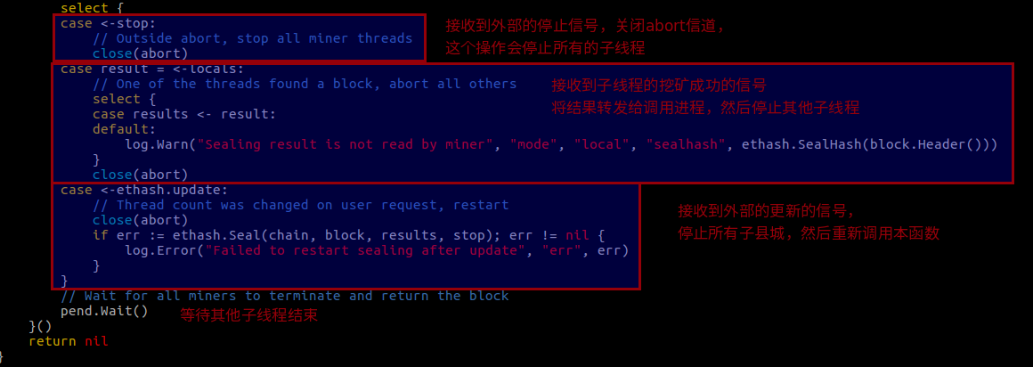 这个函数主要是创建和子线程的控制,然后我们看下同一个文件的 mine 这个函数: