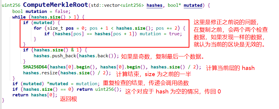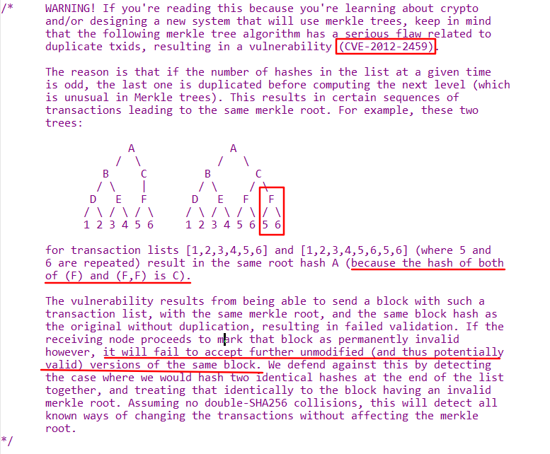 在看 ComputeMerkleRoot 之前,先看下这个函数前的大篇幅注释: