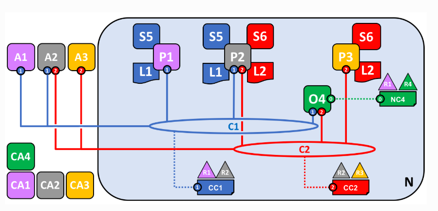 - NC*,是整个网络的基础配置,最开始由 R4 创建,在 R1 加入之后,可以由 R1 和 R4 共同维护和更改。配置包含但是不限于访问控制、管理资源。