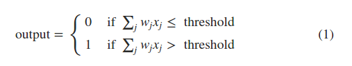 \[\sum_{j} w_{j}x_{j} \equiv w\cdot x\] \[b \equiv -threshold\]这个bias代表的是how easy it is to get the perceptron to fire